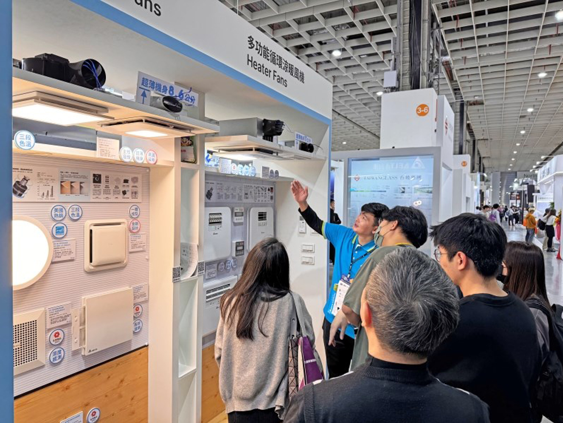 此次新品亦展現台達在設計美學與技術創新上的持續突破,包括新一代的豪華型300系列浴室暖風機與VFB21系列換氣扇,效能升級、產品外型更輕薄。新風產品線亦展示2025年推出的PM2.5直流變頻全熱交換器(內循環型),內建自動旁通模式與內循環功能,換氣快、更節能。另外,現場更展示了全室淨化平衡換氣方案,透過台達全室淨化新風機、負壓排氣管道扇及品質控制器,引進清淨入室的好空氣,打造自然舒適的生活環境。