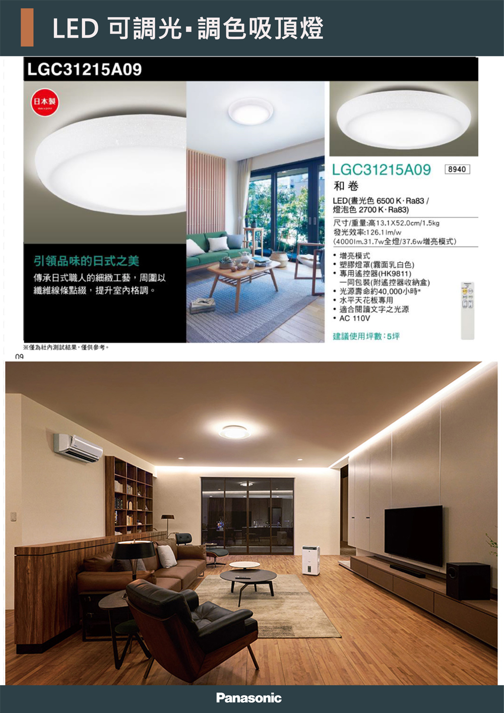 發光效率:126.1 lm / W(4000lm . 31.7W 全燈/37.6增亮模式)